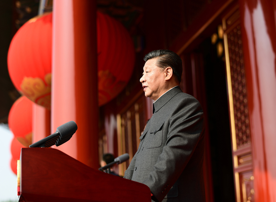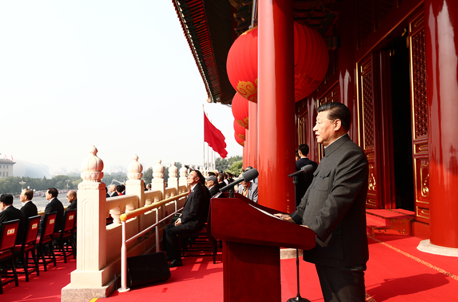 10月1日上午,庆祝中华人民共和国成立70周年大会在北京天安门广场隆重举行。中共中央总书记、国家主席、中央军委主席习近平发表重要讲话。 新华社记者 谢环驰 摄