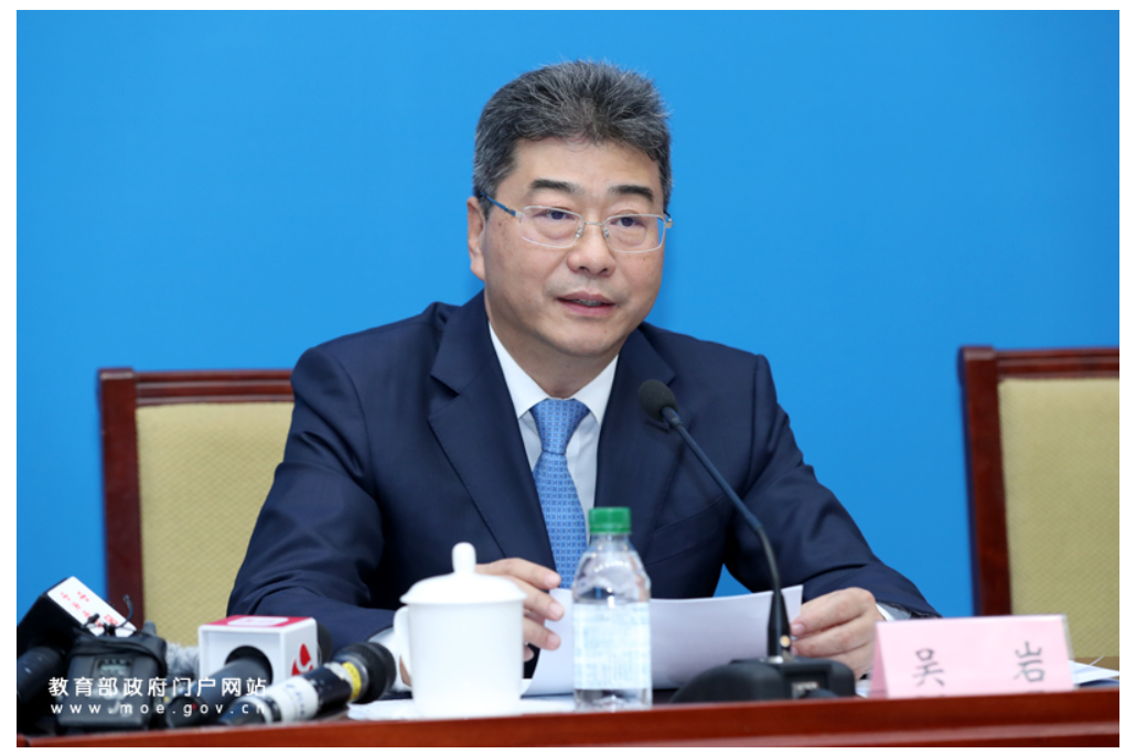 教育部高等教育司司长吴岩介绍高校创新创业教育改革总体情况及第五届大赛有关情况。(中国教育报记者 张劲松/摄)
