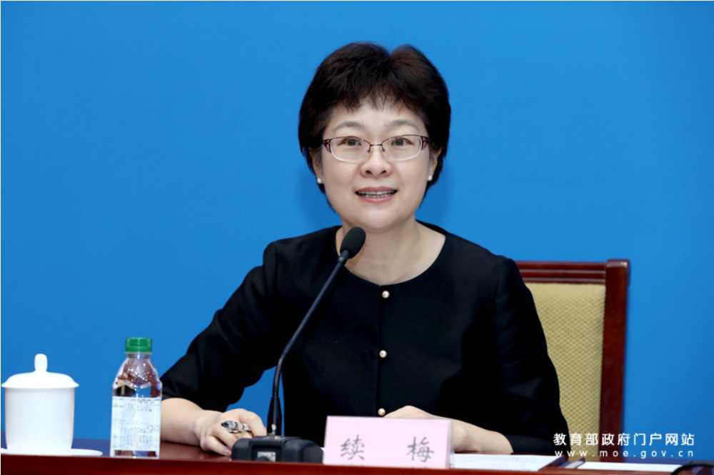 教育部新闻发言人续梅主持发布会。(中国教育报记者 张劲松/摄)