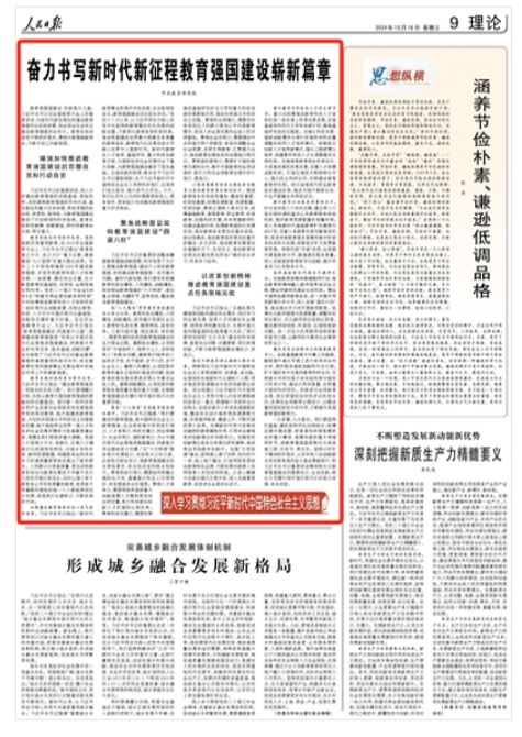 一分部署,九分落实。我们要坚持打基础、建机制和利长远相结合,统筹近期中期远期,抓紧谋划布局急需抓住的重大事项、急需突破的重大领域和环节,将教育强国蓝图转化为具体施工图、任务书、责任状。坚持以钉钉子精神抓好落实,以百年树人的战略眼光和百舸争流的奋斗姿态勇毅前行,把习近平总书记重要讲话精神转化为教育强国建设的澎湃动力、生动实践,转化为支撑引领中国式现代化的有力举措、务实成效。(本文刊发于《人民日报》2024年10月16日第09版)