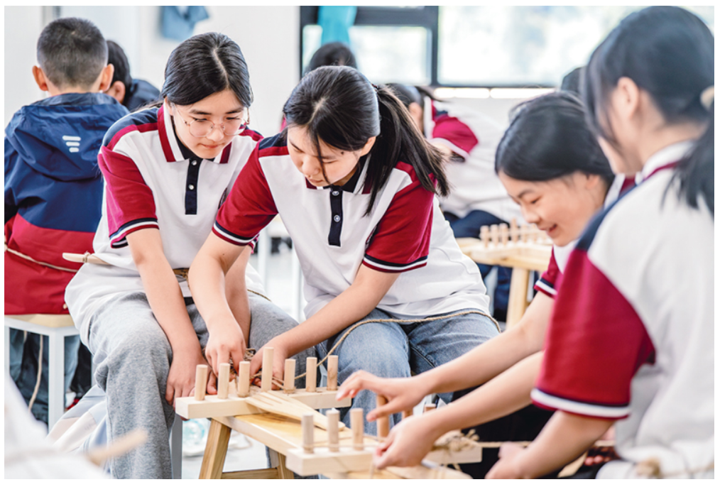 近年来,各地立足当地红色文化资源优势,组织学生以红色旧址遗迹为“教室”,以文物史料为“教材”,开展“行走的思政课”主题教育活动。图为2025年5月12日,云南省昭通市威信县第一中学学生在红色研学实践基地体验编织草鞋,在实践互动中重温红色革命历史。 (新华社记者 胡超/摄)