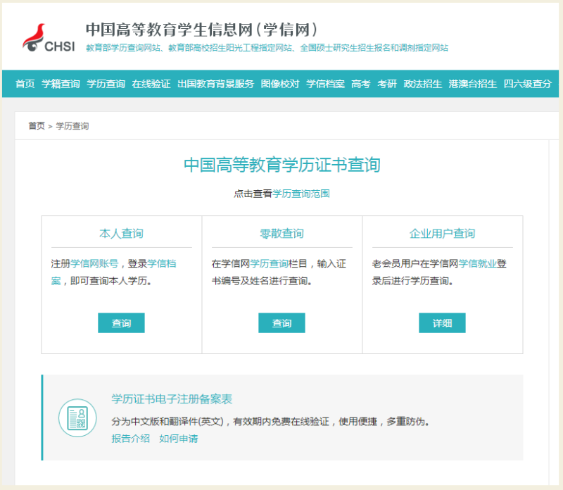 2、学历查询和验证报告申请网址: https://www.chsi.com.cn/xlcx/index.jsp