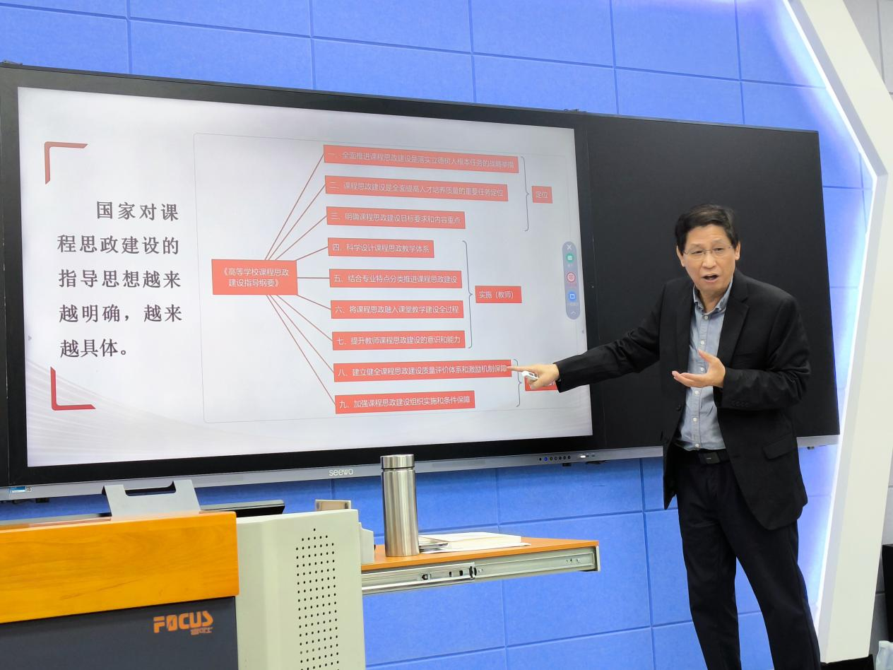 在“何谓课程思政”环节,王校长深入解读其内涵,围绕“一条主线、五大重点”阐释课程思政的核心内容。针对当前课程思政实践中易出现的“硬融入”“两张皮”等问题,他指出关键在于转变“思政是附加项”的观念,强调课程思政应回归课程本身的育人功能,并借助教学案例说明:课程思政并非“专业课+思政”的简单叠加,而是从知识内容、思维方法与价值理念中自然挖掘德育资源。