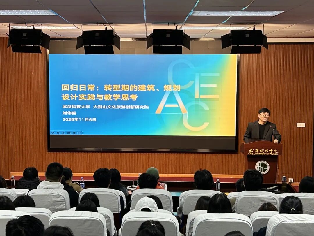11月6日,我校城建学部邀请武汉科技大学城市建设学院副教授、硕士生导师刘伟毅,在南一2号报告厅举办了以“回归日常:转型期的建筑、规划设计实践与教学思考”为主题的人文素养讲座。
