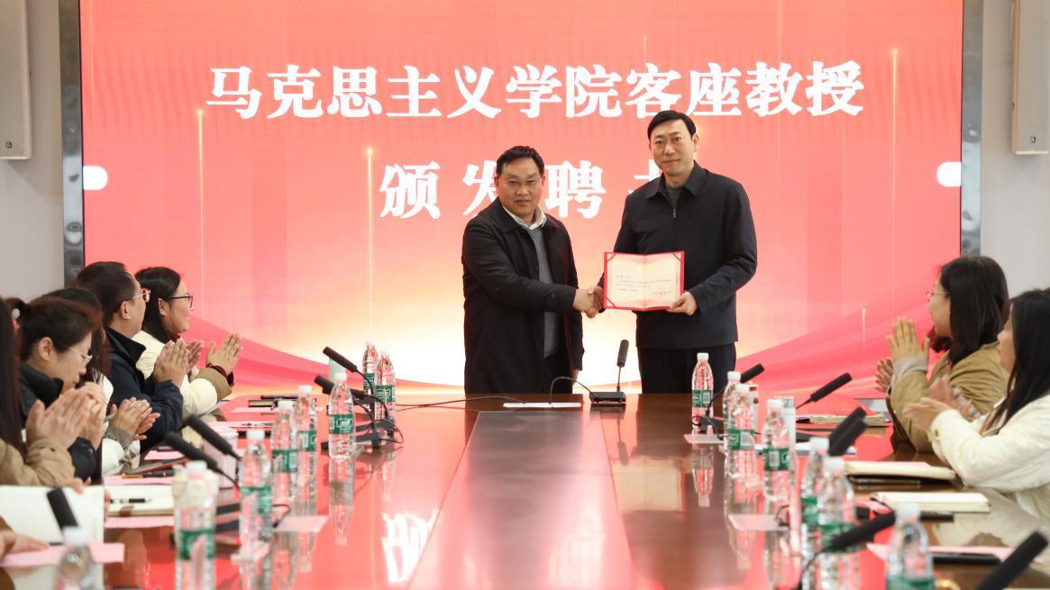 开幕式上,还举行了武汉工程科技学院课程思政教学研究中心揭牌仪式。胡晶晶协同人民网文华在线华中区域总经理秦修钰共同为研究中心揭牌。该中心的成立,将为学校深入推进课程思政建设提供有力的平台支撑,助力构建“大思政”育人新格局。随后,武汉工程科技学院特聘中国地质大学马克思主义学院院长、教授、博士生导师阮一帆为马克思主义学院客座教授,马克思主义学院院长阎占定为阮一帆教授颁发聘书。