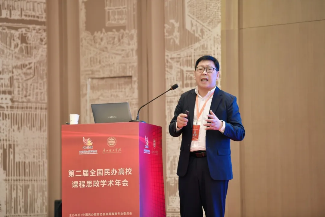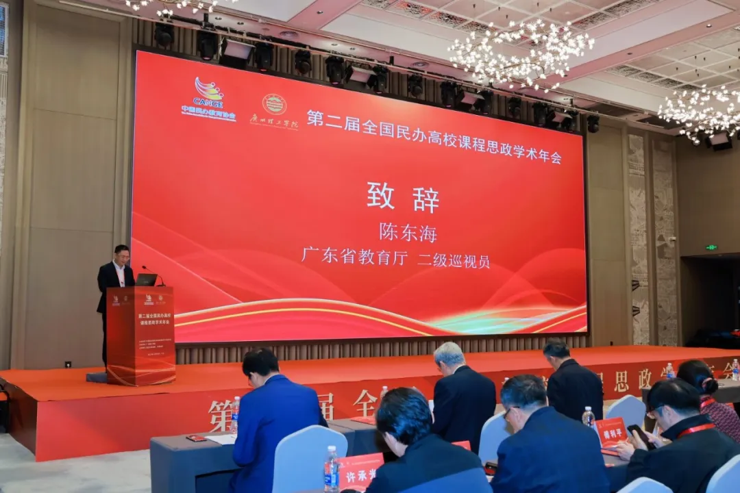 广东省教育厅二级巡视员陈东海在致辞中指出,课程思政建设是民办高校落实立德树人、提升内涵质量的关键。民办高校需充分发挥自身优势,将企业家精神、工匠精神等鲜活元素有机融入教学,探索彰显自身特色的育人路径。