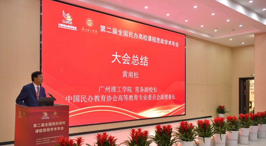 大会为民办高校搭建了高层次、宽视野的交流平台,旨在汇聚民办高等教育智慧,深化课程思政建设,共同探索立德树人深耕路径。大会由广州理工学院常务副校长、中国民办教育协会高专委副理事长黄南松教授主持。