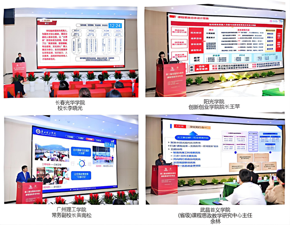 长春光华学院、广州理工学院、兰州信息科技学院等单位围绕育人体系构建、课程思政实践体系、“党建引领+数字融合”等主题,系统介绍了课程思政与办学特色深度融合的宏观路径。在教改交流环节,阳光学院、武昌首义学院、山东协和学院等院校代表聚焦具体课程与专业群,介绍了“三链双融一创”“五化五润”“智造强国 铸魂精算”等特色教学模式,展示了思政元素在创新创业、智能建造、汽车工程等不同领域的精细化设计与生动实践。这些分享紧密贴合民办高校实际,既有顶层设计的系统性,又有一线教学的实践性,为拓展课程思政建设的广度与深度提供了丰富而鲜活的案例借鉴。