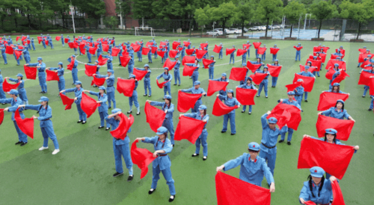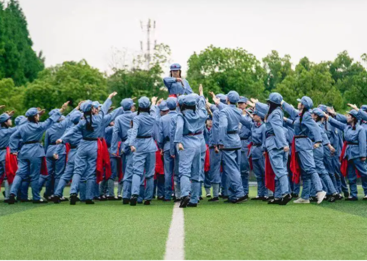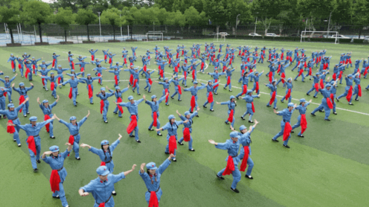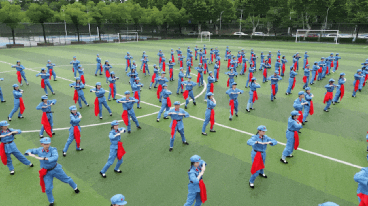 为课程成果的延伸,由胡萍、胡冰砚、冉桢老师团队参与编导的大型体育舞蹈作品《红安红》应运而生。该作品以鄂豫皖革命历史为背景,200余名学生通过探戈语汇生动再现革命岁月。2025年5月15日,在校运会开幕式上,《红安红》首次亮相,气势恢宏的舞步与革命历史的厚重感交相辉映,成为一堂“动起来的思政大课”,广受师生好评。