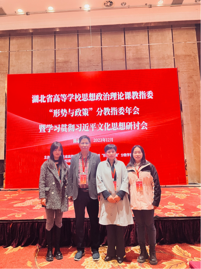 (通讯员 龚璇)2023年12月9日,湖北省高等学校思想政治理论课教指委“形势与政策”分教指委年会暨学习贯彻习近平文化思想研讨会在咸宁市举行。会议由湖北省高等学校思想政治理论课“形势与政策”分教学指导委员会、湖北科技学院主办,湖北科技学院马克思主义学院承办。湖北省“形势与政策”分教指委委员、武汉城市学院副院长、马克思主义学院院长王军教授带队,学院党总支副书记吴丽波,马克思主义理论系副主任龚璇,思想政治教育系副主任熊晶参加此次年会。
