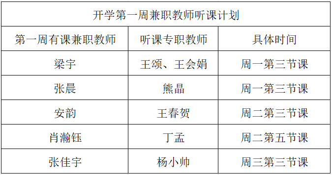 本次活动由马克思主义学院教学副主任王颂和思想政治系副主任熊晶,带领王会娟、王春贺、丁孟、杨小帅四位老师一同走进兼职教师课堂。他们按照《思政课教学听课记录表》相关指标,通过实地观摩,深入了解兼职教师的教学理念、方法和课堂管理技巧。