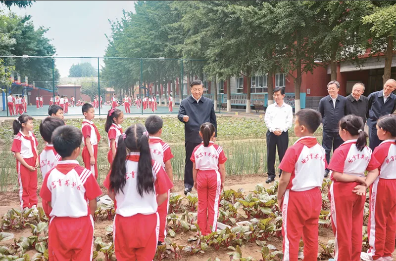 2023年5月31日上午,中共中央总书记、国家主席、中央军委主席习近平来到北京育英学校看望慰问师生,向全国广大少年儿童祝贺“六一”国际儿童节快乐。这是习近平在学生农场同正在进行农业种植实践的小学生们亲切交流。新华社记者 鞠鹏/摄