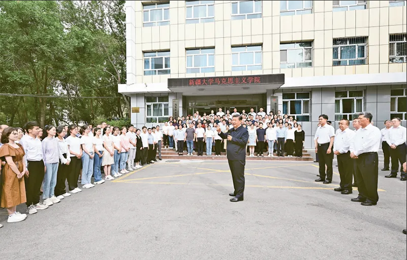 2022年7月12日至15日,中共中央总书记、国家主席、中央军委主席习近平在新疆考察。这是12日下午,习近平在新疆大学考察时,同师生们亲切交流。新华社记者 李学仁/摄