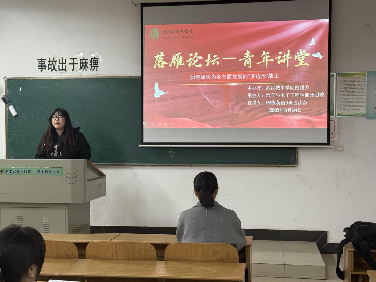 (通讯员张佳宇)为帮助低年级学生更好地规划大学生活、明确学习方向,11月24日下午,汽车与电子工程学部在南3108教室举办了优秀学生代表经验分享会。学部副书记胡艳华老师、辅导员张佳宇老师、22级英语专业占汝杰同学、23级智能汽车专业杨志杰同学出席活动,与学部24、25级本科全体同学进行了面对面的交流。