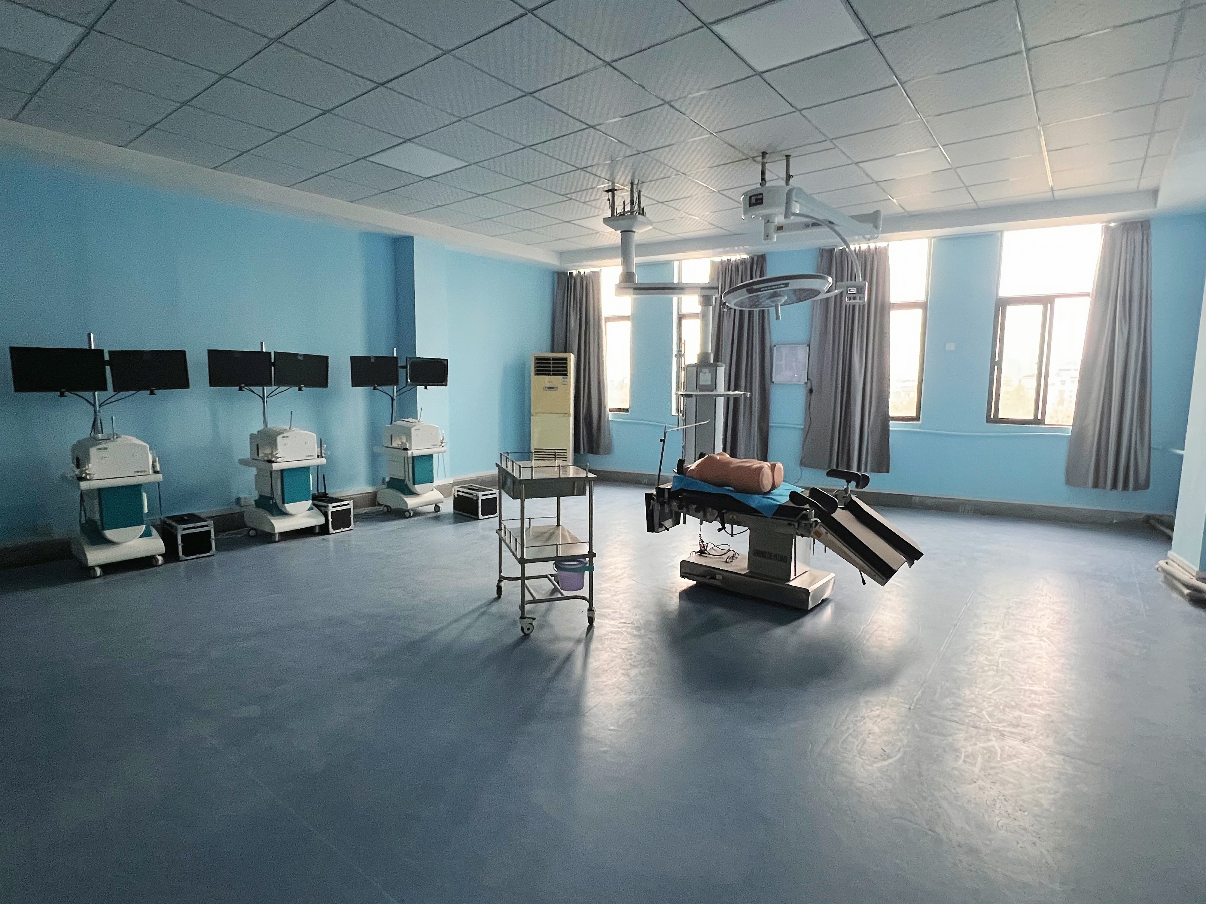 其主要设备包括万能综合手术床、麻醉机、冷光四孔无影灯、负压吸引器、呼吸机、无菌手术衣、各种外科手术器械、脚踏式洗手槽等,可容纳40人同时模术前拟进行手术室护士的各项工作。通过实验可以培养学生熟悉手术室的布局与管理、手术器械台的管理;并掌握手术人员的术前准备系列技术、常见手术体位的安置、手术区域消毒与铺巾等操作。