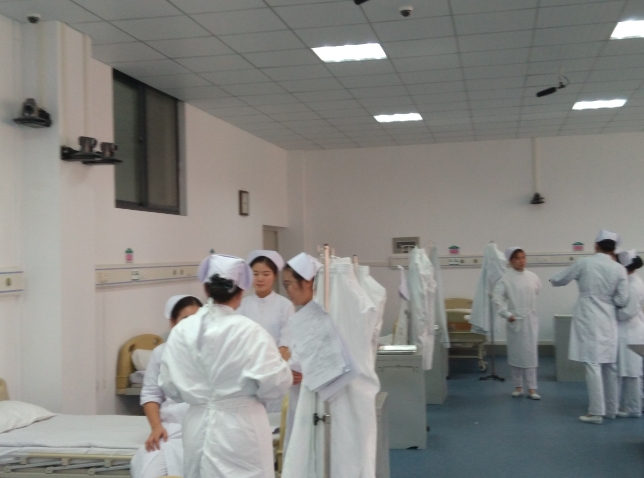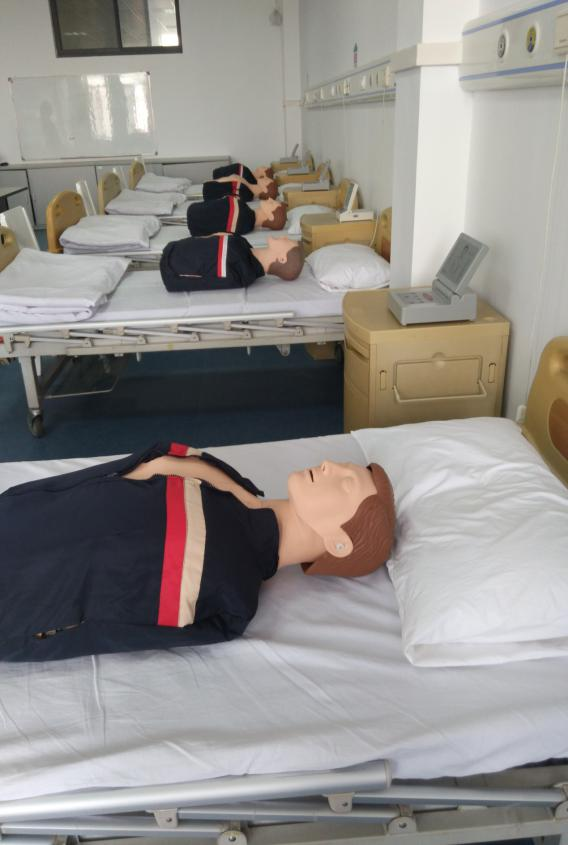 武汉城市学院医学部实验教学中心护理技能实验实训室位于图书馆辅楼4楼403、406,有国内外先进的护理仪器设备,达到1套/1—2人使用。教室配有多功能护理床10张,每张床配有多功能护理模型人;全部安装中心管道给氧、负压吸引装置及呼叫系统,并配备有视频录制监控回放设备,以利于学生不断观摩教师所授内容,提高学习效果;还配有高级电脑复苏模型人、复苏模型人,仿真静脉手臂、静脉输液模型、肌内注射模型、静脉输液泵、负压吸引器等。护理技能操作实验实训室基本模拟医院病房环境,使学生能身临其境,可快速适应医院工作环境。护理实验实训教室可保证学生每人100学时操作实验课和32学时实训课,培养的学生动手能力强,得到医院一致好评。除日常护理专业课程实验教学外,每学期都制定开放计划,为学生操作训练提供技术及场地保障,使学生在反复练习过程中发现问题。解决问题,提高操作技能的同时,培养了学生的评判性思维能力。