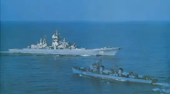 但是,即便是如此,051型全舰官兵毅然选择冲刺,首先一点便是紧咬最大的1144型巡洋舰,反舰导弹发射筒舱盖打开,全舰火炮对准1144,迫使苏军编队指挥官嗅到危险的气味,仓促下令撤离。就在撤离期间,为了向中国海军表示自己的进入并无恶意,三舰的大小主炮全部高高扬起。