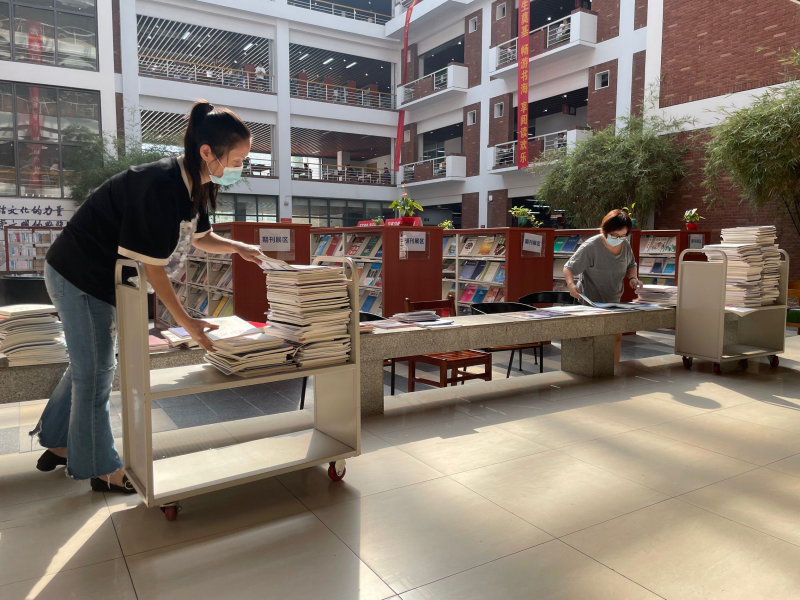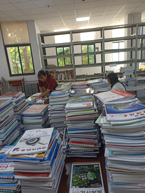 今年暑假,恰逢疫情,积压期刊40余包,累计2000多册,为保证期刊服务工作不受影响,图书馆老师带领勤工助学的学生一起拆包、验收、盖章、分类,逐一进行系统记到,并将已审校过数据的期刊全部整理上架,保证期刊及时与读者见面。