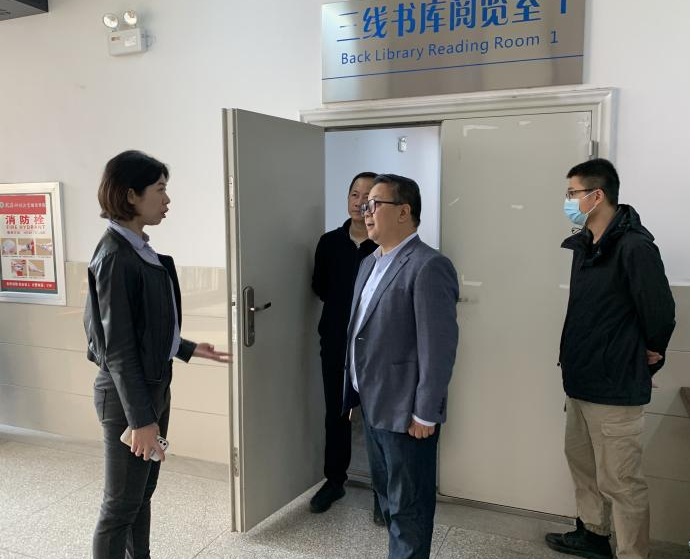 (通讯员 熊晶晶)为了营造良好的学习氛围,加强图书馆公共座位资源及考研自习室座位资源的管理与利用,为广大学生提供更优质的服务,10月11日上午,图书馆及学生工作处协同开展工作,实地考察并就下一步的工作进行了商讨。学生工作处处长严建、图书馆支部书记石顺利、学生工作处学生教育管理科科长陈念、图书馆办公室主任熊晶晶、流通部主任杨旭红等相关人员参加。
