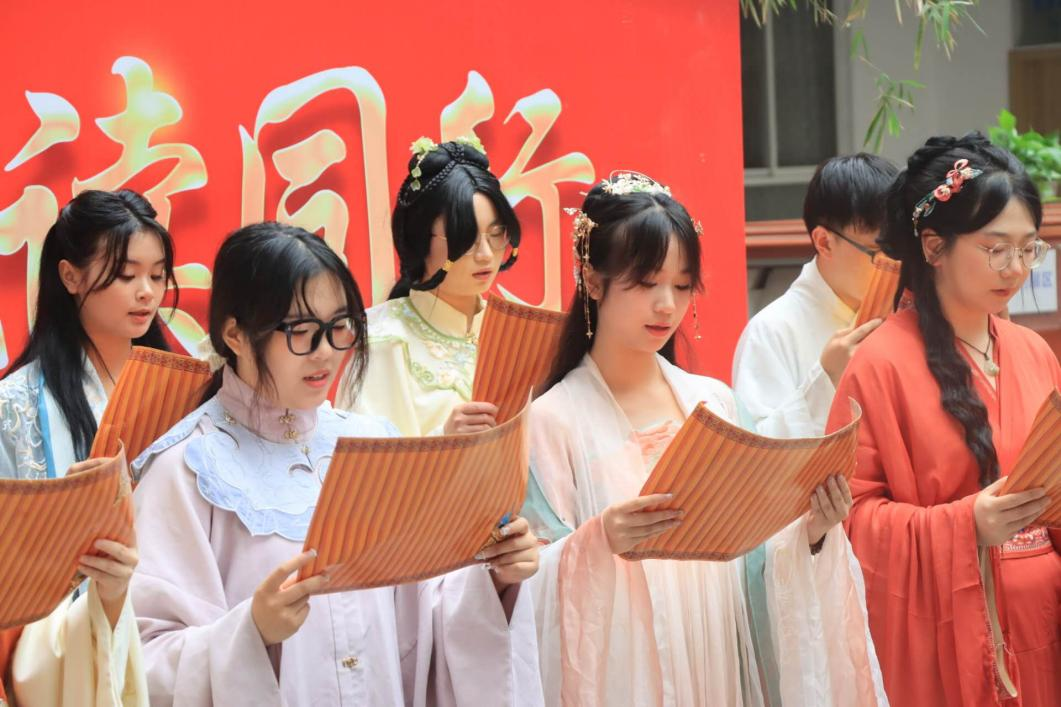 我院汉服社的同学们为现场观众带来了一场“盛世霓裳 经典共赏”汉服《论语》诵读表演。同学们身着精美的汉服,声情并茂地诵读经典,将知识与艺术完美融合,赢得了现场观众的阵阵掌声和喝彩。