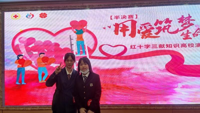 新闻网讯(通讯员 杨均琪 王逸凡)4月16日下午,2022年“用爱筑梦,生命接力”红十字三献知识高校演讲半决赛在合伙人大厦举行。我校外语学部2021级英语1班学生方雨佳、城建学部2020级建筑学2班学生郑慧棋经过校级选拔,参加了本次半决赛,在赛场上表现出色,展现了我校学生积极自信的精神风采,郑慧棋晋级总决赛。