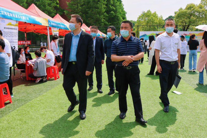 青山区委组织部副部长黄翔,人力资源局局长宋文涛,人才服务中心副主任冯丽华、万军来到招聘现场,为前来应聘的应届毕业生答疑解惑。我校院长陈建勋、党委副书记肖军、副院长刘丹亲临一线,深入了解招聘需求。陈建勋一行沿着招聘展位,不时驻足在企业招聘台前,与企业工作人员交谈,查看招聘信息,详细询问企业用工需求和现场招聘情况,希望他们能吸引更多我校毕业生到企业就业,实现校企双赢。