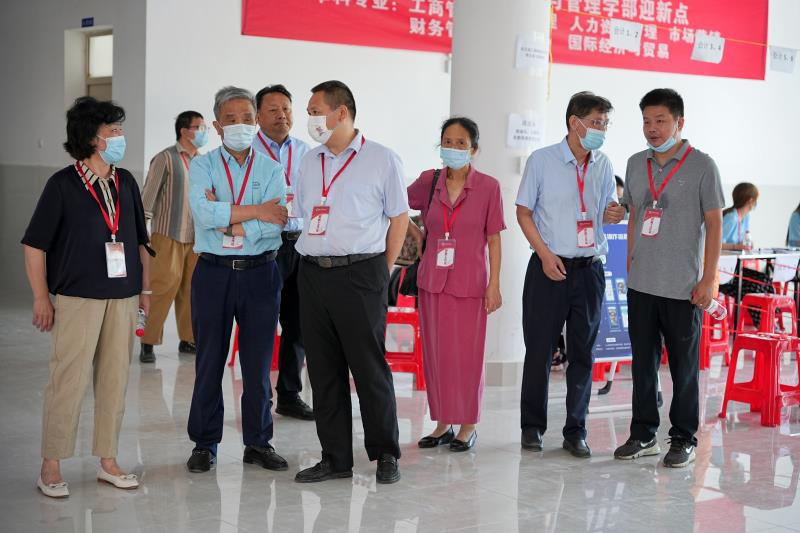 上午9时,院长陈建勋、党委书记王军、副院长彭邦银、党委副书记肖军、人力资源总监刘汛汛、院长助理杜磊来到迎新现场,走访慰问迎新工作人员、新生和志愿者。校外迎新点、校门口、报到处、宿舍楼、教室……每到一处,校领导都仔细查看新校区各项设施的建设情况以及学生的住宿和饮食情况,全力为学生营造整洁、舒适的学习生活环境。