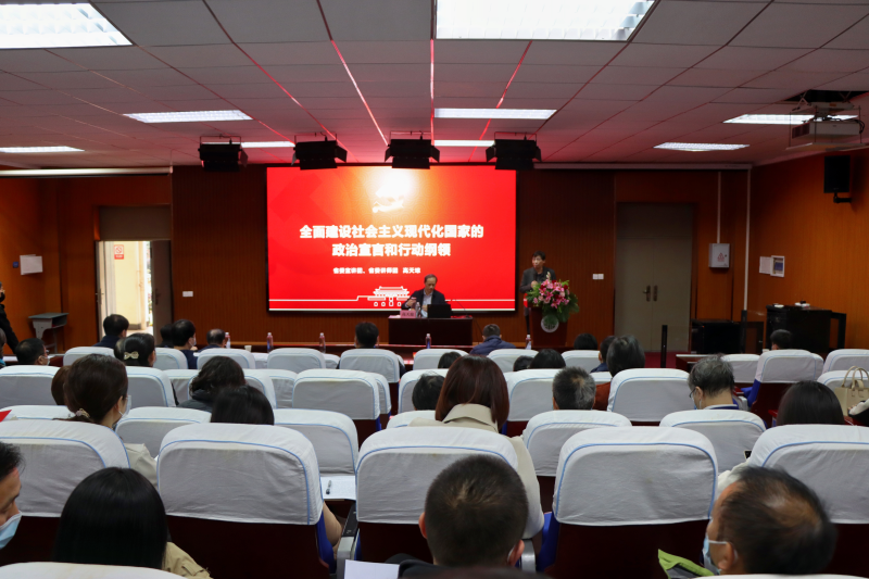 新闻网讯(记者袁晚露)11月16日下午,学习贯彻党的二十大精神省委宣讲团报告会在我校南一(2)号报告厅举行。省委宣讲团成员、省委讲师团主任高天琼以《全面建设社会主义现代化国家的政治宣言和行动纲领》为题作宣讲报告。我校党委书记王军主持会议。
