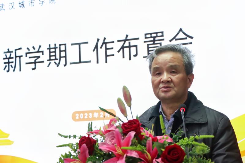 陈建勋同志强调,2023年,每位教职员工要以立德树人为根本任务,始终把教学工作摆在学院发展的中心位置,撸起袖子加油干。一是要牢牢绷紧疫情防控这根弦,按照“乙类乙管”的要求落实防控举措,保障校园秩序安全稳定、师生身心健康发展;二是要以迎接2026年的本科教学工作合格评估为契机,发扬务实精神,以评促建、以评促管,狠抓教学、科研、人才培养和师资队伍建设,把迎评工作做在平时,落实落细,力促学院教育教学质量和办学水平得到显著提高;三是要构建长效机制推进教师全面发展,优化学科专业结构,提高基础学科教育质量,建立学科基础发展津贴,鼓励和引导更多的专业教师在教学、科研、学科竞赛上做出成绩,推动学院高质量发展;四是切实做好做实毕业生就业工作,各学部要急学生之所需,想学生之所想,加强就业指导和服务,强化校企合作,广泛开拓就业市场,多措并举、千方百计推动学生高质量就业;五是要以教学为中心,对照本科教学质量标准设置课程,明确应用型人才培养目标,以提高人才培养质量为核心,确保人才培养更显实效;六是统筹做好考研和专升本工作,深入细致做好学生的服务工作,建立团队精准帮扶,抓细、抓实、抓出成效,助力学生实现自己人生梦想;七是继续强化招生工作,各学部要加大招生投入力度,采取有效应对措施圆满完成董事会确定的招生目标。所有工作都要服务和服从于教学这个中心,形成全员育人、全过程育人、全方位育人的强大合力。陈院长希望全体教职员工在新学期心往一处想,劲往一处使,紧紧围绕年度重点任务,创新工作方式方法,锚定目标方向,主动作为,不折不扣地将各项工作落细落实落地,推动学院各项事业不断迈上新台阶。