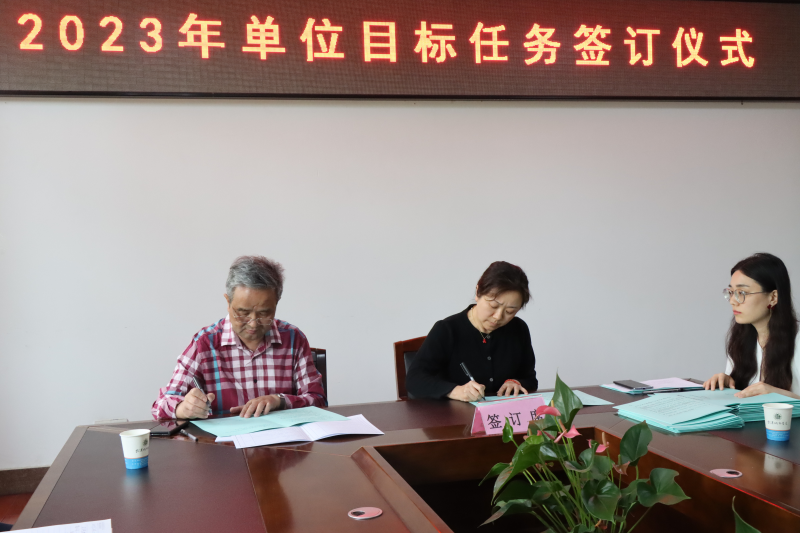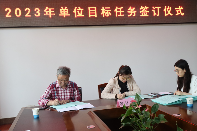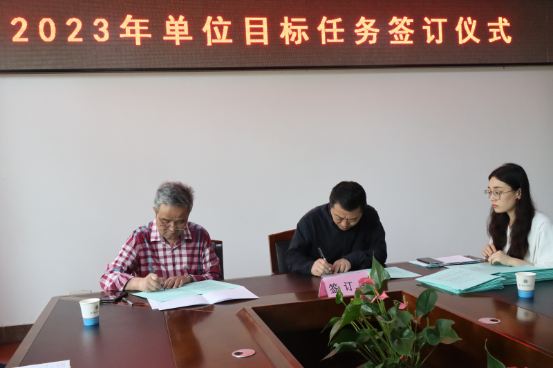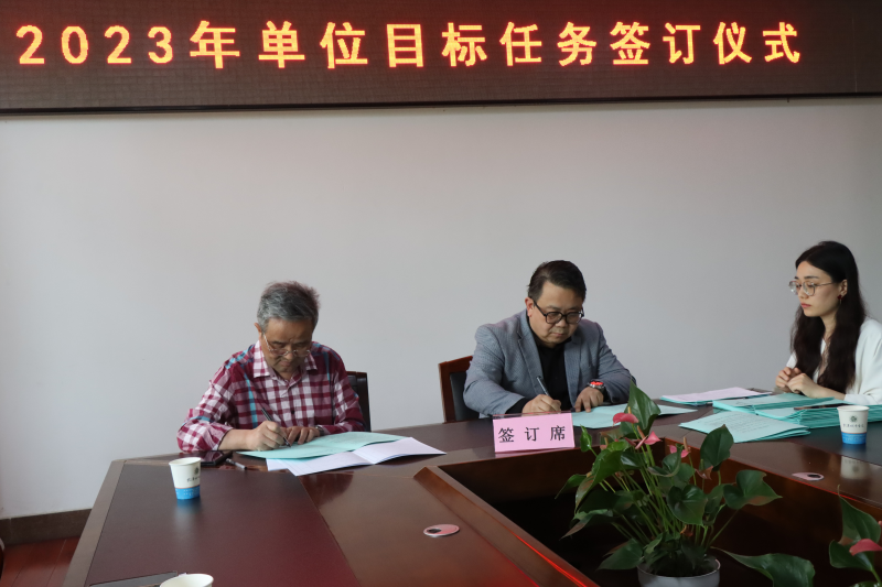 陈建勋代表学院与各职能部门负责人、各学部主任签订2023年单位目标任务书。