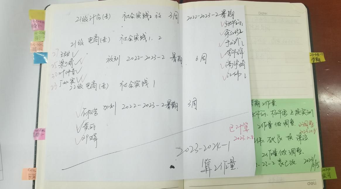 在这个岗位上,徐慧娴主要负责学生实践课程表的制定、毕业设计实习安排、教师教科研项目管理、实践教学管理及专套本的教学管理工作。她认为,自我驱动力和自我管理能力是实现这些任务的关键。她每天早早地来到办公室,对安排的每一项任务,都会仔细制定一个时间表和优先级写在记事本上,对每件任务也会做好具体的分类,并用标签纸贴在记事本的相应位置,确保每个任务不会出现遗漏,并都能够在规定的时间内保质保量完成。在每学期的实践课程表的制定工作中,她不仅需要仔细考虑课程的难易程度和学生的学习疲劳情况,还要确保任课老师有足够的时间备课和休息。她经常与各个班级的任课老师和教务处进行沟通,以了解他们的具体情况和要求。最终,通过与各方的合作和努力,制定出一个既符合学校要求又能满足学生需求的课程表,促进教学质量提升和学生全面发展。