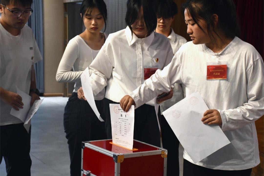 332名代表于分团会议中认真讨论审议了大会工作报告及第二十届校学生会主席团候选人预备人选、第五届学生委员会委员候选人预备人选名单,在大会上表决通过了《大会选举办法》,以及大会总监票人、监票人、总计票人、计票人名单,并投票选举出第二十届校学生会主席团成员名单、第五届学生委员会委员。