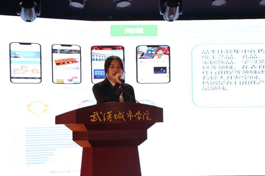 团队成员、艺术与设计学部2021级视觉传达3班学生王子怡从“缘起”“问道”“寻道”“行道”四方面详细介绍了课题提出的依据、研究课题的方法和过程、课题的应用场景以及团队成员的实践场景。