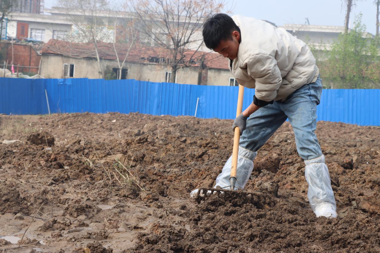 当日上午8:30,随着清晨的第一缕阳光洒落在校园的土地上,学生们手持铁锹、铲子等工具,激情满满地开始了开垦土地的工作。教师官文娟和学生们并肩作战,她细心指导学生们如何使土壤达到最佳的平整度,特别是针对有渍水的地方,通过耙土的方式使其变得松软,以防止种子因潮湿而腐烂,进而影响整体的发芽率。在师生的共同努力下,原本荒芜的土地逐渐变得平整。在播种环节,官文娟强调种子要均匀撒播,确保每一寸土地都被花种覆盖,这样才能在日后呈现出最佳的观赏效果。播种完成后,学生们按照官文娟老师的指示,用无纺布覆盖并固定,这不仅可以起到遮光和保温的作用,还能有效提高种子的发芽率。上午12:20,种植任务顺利完成。