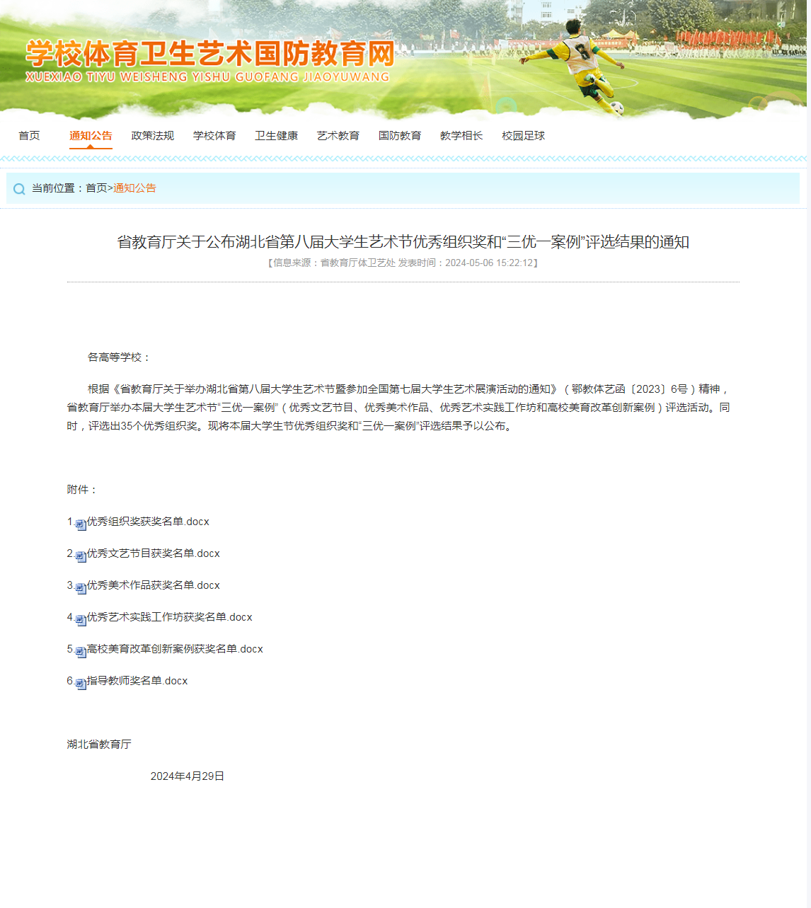 湖北省第八届大学生艺术节高校美育改革创新案例获奖名单