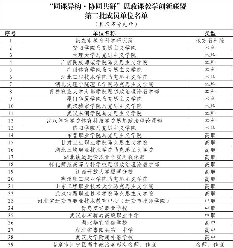 2024年4月1日,联盟发布《关于征募“同课异构 协同共研”思政课教学创新联盟第二批成员单位的通知》。我校积极申请,经多方努力,成功获批成为联盟第二批成员单位。