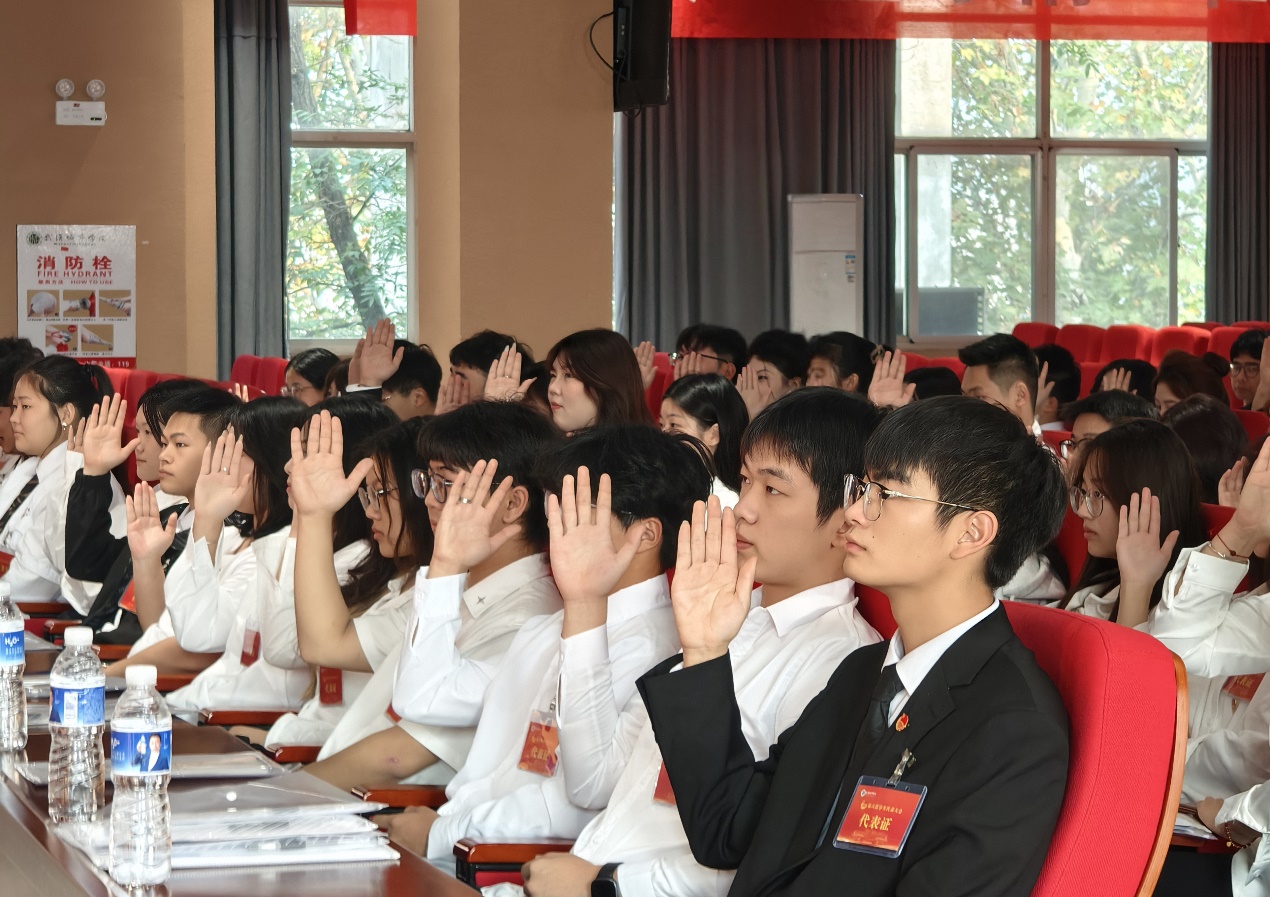 第二十届学生会主席团成员刘健彬作《学生会工作报告》。他表示过去一年,校学生会始终秉持“全心全意为同学服务”的宗旨开展工作,通过开展科技竞赛、知识演讲等学术活动打造浓厚的学习氛围;通过举办文化市集、红色推理等文化活动筑牢理想信念;通过开展女生节等活动维护学生权益。同时,校学生会不断创新工作思路、优化组织结构、完善规章制度、强化自我管理,打造了一支信念坚定、品学兼优、朝气蓬勃、心系同学的学生干部队伍。最后,刘健彬同学倡议全校青年高举中国特色社会主义伟大旗帜,在校党委、上级学联和校团委的指导下,凝心聚力,求真务实,踔厉奋发,勇毅前行!