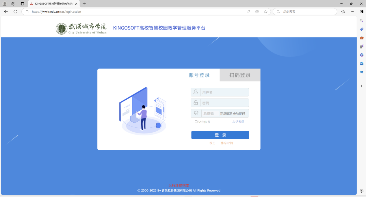 搜索网页 https://jw.wic.edu.cn/cas/login.action进入“武汉城市学院教学综合管理平台”。