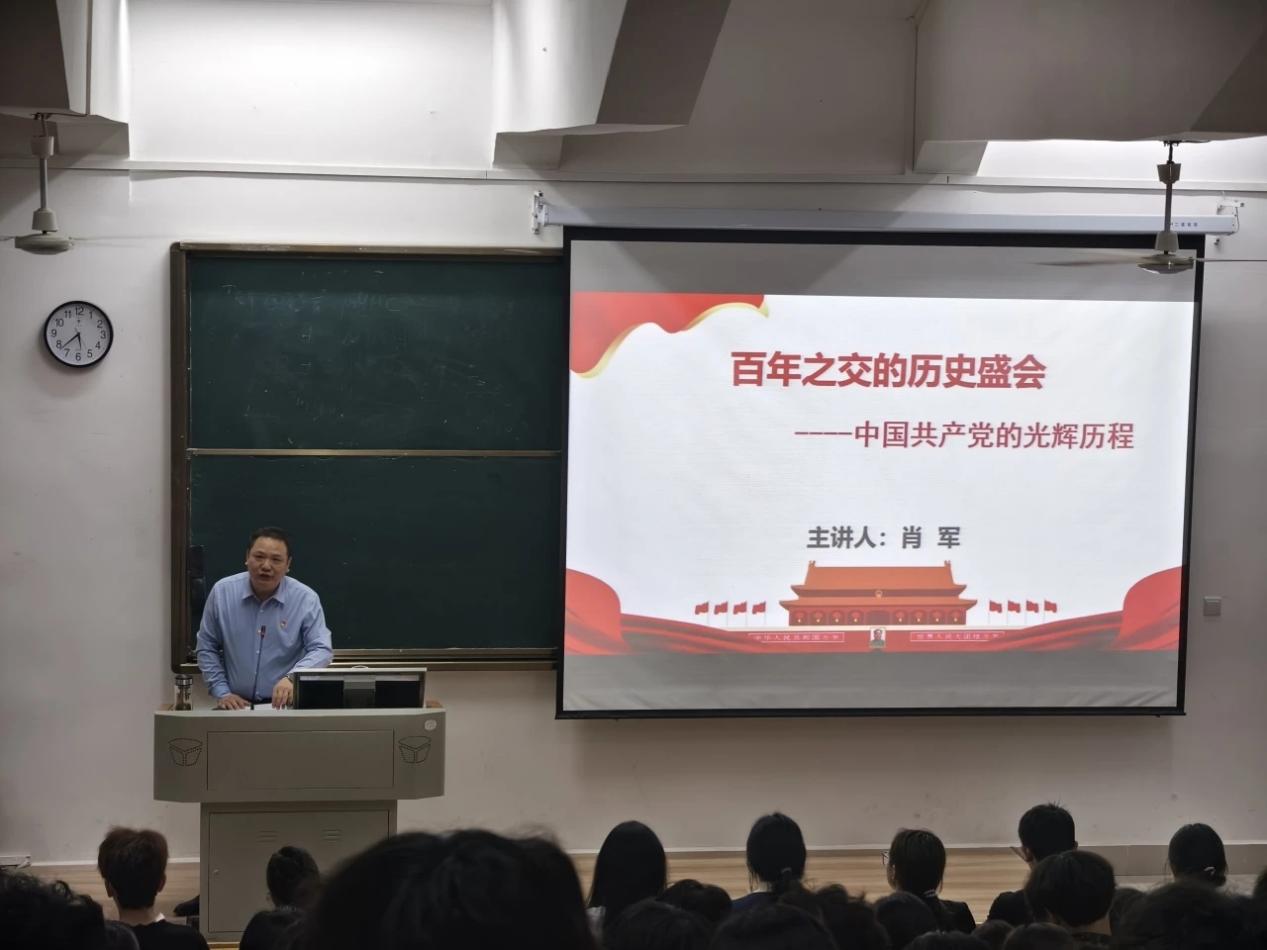 开班典礼结束后,肖军以《中国共产党的光辉历程》为题讲授了第一堂党课。他详细阐释了新民主主义革命、社会主义革命和建设、改革开放和社会主义现代化建设、新时代中国特色社会主义这“四个伟大成就”的内在原因,并强调,只有了解中国共产党的百年奋斗历程和艰辛探索,我们才能铭记开天辟地的救国大业,了解改天换地的兴国大业,回望翻天覆地的富国大业,实现惊天动地的强国大业,继而坚定理想信念,明确奋斗目标,立下使命职责。