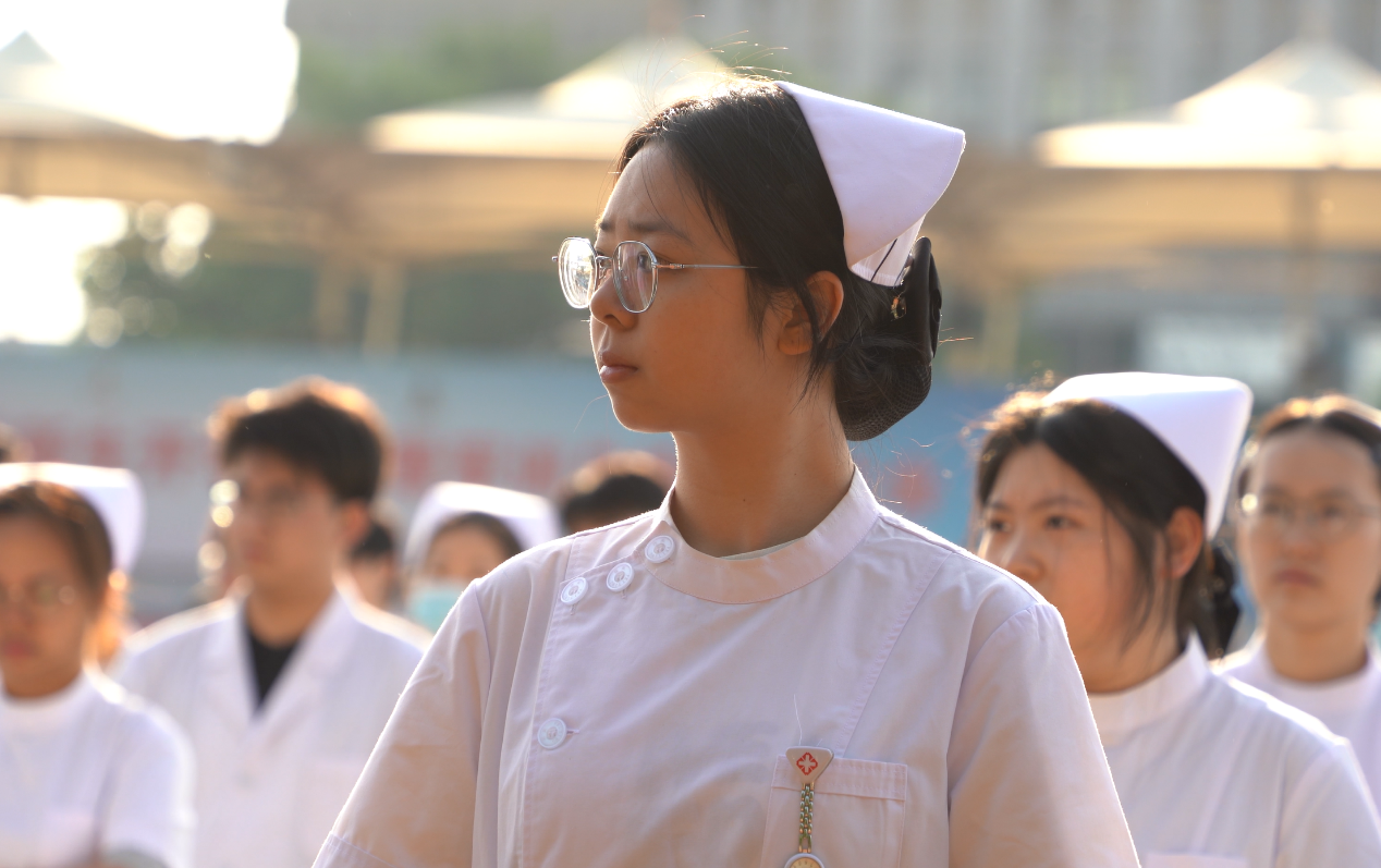 新闻网讯(记者 汤谨荧 李小龙 )为庆祝第114个国际护士节,弘扬南丁格尔勇敢无畏、甘于奉献的精神,5月12日上午7时,我校医学部近两千名师生,身着护士服参加“5.12国际护士节”升旗仪式暨集体宣誓大会,医学部党总支书记杜征帆主持升旗仪式。学校副校长赵光红出席,全体辅导员参加升旗仪式。