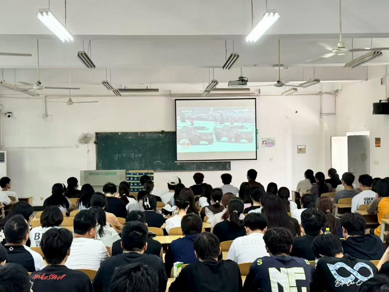 在各学部教室和会议室,师生们共同收看阅兵盛况,沉浸在这场展现国家实力与民族精神的视觉盛宴中。大家凝神屏息,专注凝视屏幕中的每一个画面,眼中跃动着振奋与自豪的光芒。当受阅部队以排山倒海之势经过天安门时,那整齐划一的步伐、威武雄壮的阵容,引得教室内一次次响起雷鸣般的掌声和由衷的赞叹。这一刻,师生仿佛亲临天安门广场,与全国人民同心共振,共历这庄严而澎湃的时刻。