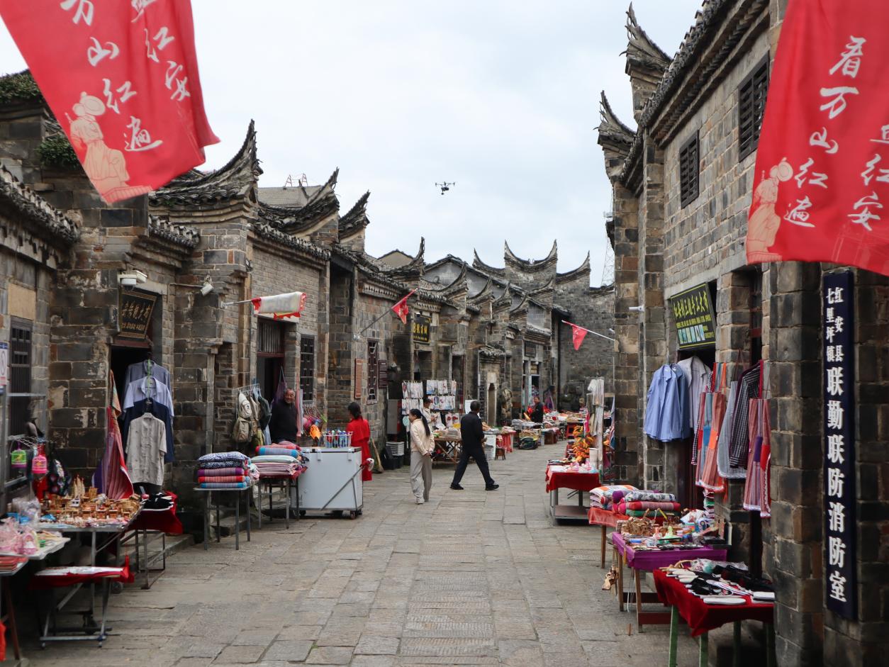 研学活动最后一站来到七里坪长胜街,围绕“追寻红色足迹 弘扬优良传统”主题开展现场教学。长胜街作为鄂豫皖革命根据地的重要遗址群,保留了大量完整的革命旧址,师生们沿着青石板路依次参观了红四方面军指挥部旧址、列宁小学旧址、七里坪工会等场所。走到列宁小学旧址,看到木制课桌与泛黄课本,讲解员温和地讲述根据地办学的故事,同学们不自觉地放轻脚步,有的俯身凑近展柜,仔细观察课本上的字迹;有的偶尔的小声交流;也有同学皱着眉头,似乎在心疼当年艰苦的学习条件,又在为革命火种的传递而感动。