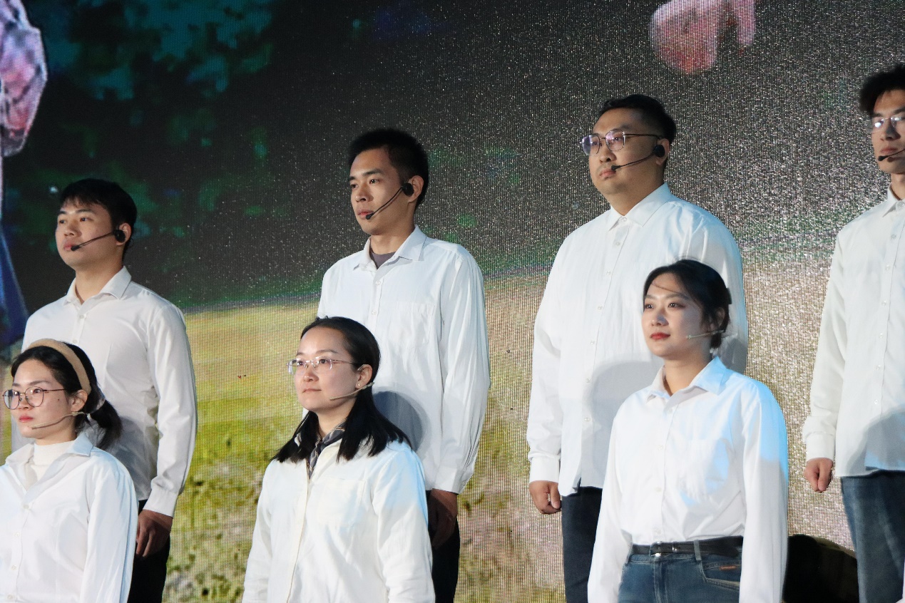 新生辅导员团队带来的朗诵+歌曲《我们都是追梦人》将晚会推向又一个高潮。他们用朗诵传递育人初心,用歌声温暖学子心灵,展现师生携手共赴梦想的动人情怀。