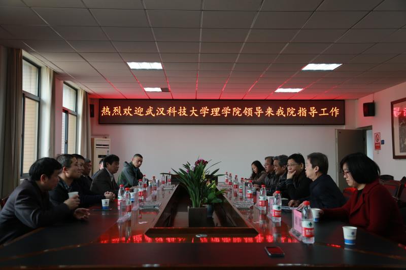 新闻网讯(见习记者王恺悦)3月14日下午,武汉科技大学理学院院长李德宜、党委书记刘泽喜一行来我院指导工作,就公共课的教育与我院作了广泛交流。院长陈建勋、党委书记王军、副院长徐东平等参加了座谈。