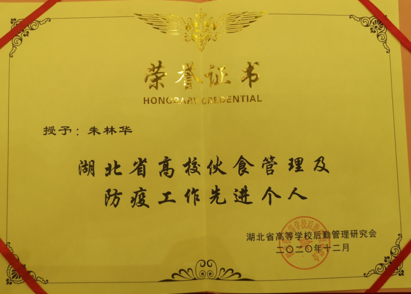 新闻网讯(通讯员皮芳)日前,湖北省教育厅高校后勤研究会在全省高校开展的“高校伙食管理及防疫工作先进单位及个人”评选活动结果公布,我院后勤集团荣获湖北省高校伙食管理及防疫工作先进集体称号,后勤集团副总经理曾剑、学子食堂经理朱林华荣获湖北省高校伙食管理及防疫工作先进个人。