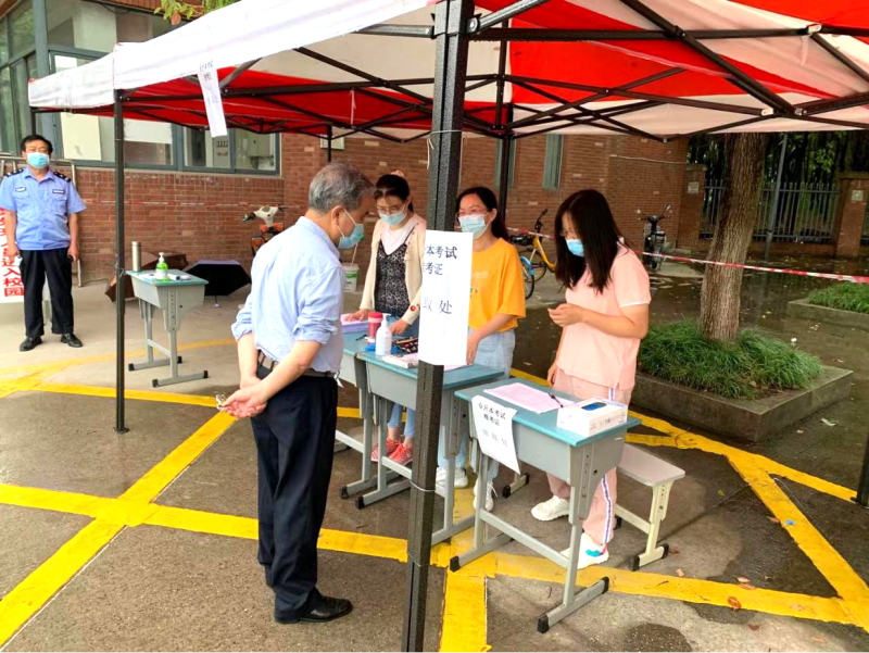 陈建勋先后查看了考生现场报名情况,检查了考点考场分布、考生出入口设置、视频监控、施考程序,详细询问了消杀、测温等防疫工作情况,对高温坚守在岗位教职工表示了慰问。陈建勋指出,专升本考试承担着专业技术人才选拔的重任,现阶段疫情形势依然严峻,防疫绝不能松懈,学校各相关部门要提高认识,强化担当,形成合力,要细致做好考试疫情防控工作,保证师生身体健康和生命安全,确保考试顺利进行。