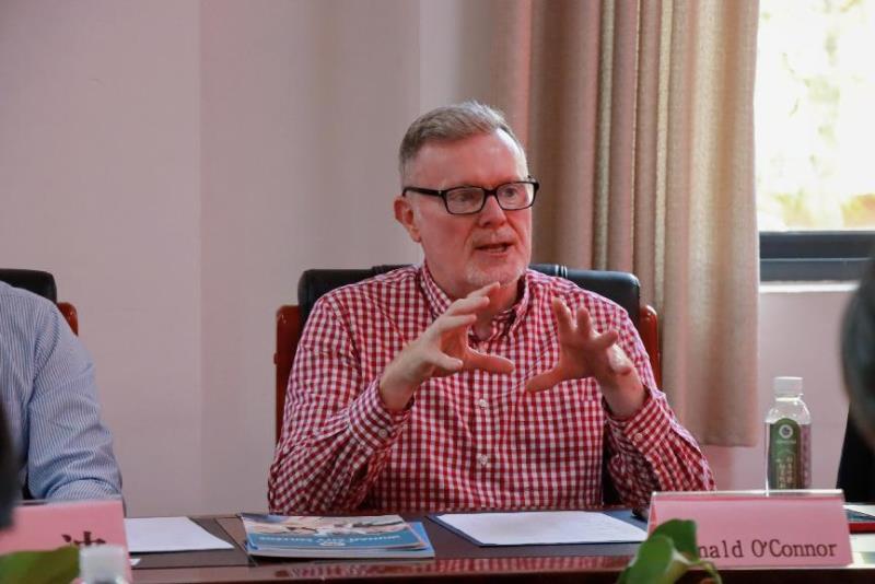 Donald O’Connor介绍南威尔士大学的基本情况。南威尔士大学是英国威尔士地区规模最大、开设专业最全的大学,开设的专业具有较强的应用性和创新性,毕业生就业率连续多年位列英国大学排行榜前列,已与中国多所优秀大学建立了良好的合作关系。他提出,目前南威尔士大学设有“USW2030”国际交流计划,并且南威尔士政府也推出了针对海外留学生的“TAITH”项目,给更多合作院校学生提供留学机会,希望两校加强了解,共谋深入合作。