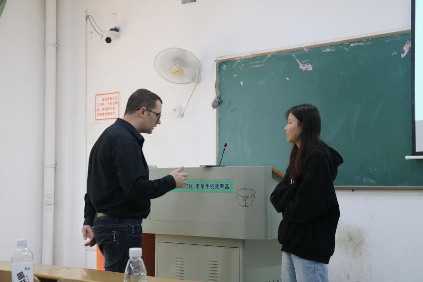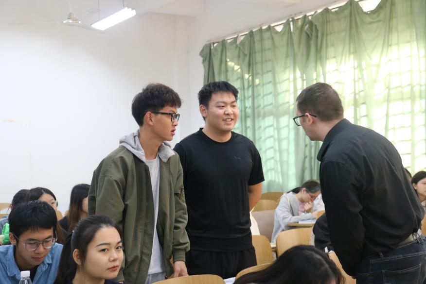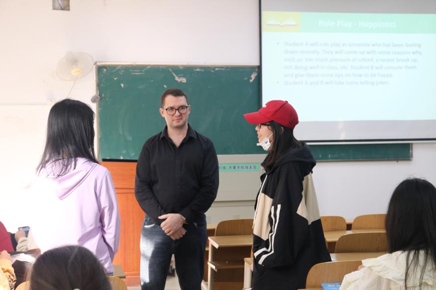 “I will create a relaxed classroom atmosphere, I hope every student can join in my class, we are not teachers or students, but friends.(我会营造轻松的课堂氛围,我希望每位学生都能加入我的课堂,我们不是师生,而是朋友。)”外语学部英语外教David的口语课堂风趣幽默,与学生亦师亦友,深受学生喜爱。