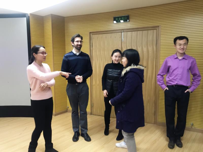 随后,Ilse Griffin女士对各位教师的到来表示感谢,并正式开始讲座。她谈到在每堂大学英语课均需引入5-10分钟教学活动,因为大量研究表明活动更有助于学生思考。而现时中国大学生课堂很少能持续课堂活动,这需要在座各位教师引起重视。接下来Ilse Griffin女士从何时开始活动,如何开展活动,做什么类型的活动等方面阐述了教学活动的意义。到场的各位教师都积极参与到Ilse Griffin女士设计的教学活动中,与Ilse Griffin女士进行热切的现场交流。
