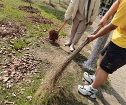 武汉的春天并不那么凉爽,春风中带着几分夏日的燥热,但即使烈日当头,同学们依旧不折不扣的完成了草坪清扫任务。在同学的共同努力下,落叶被清理干净了,垃圾纸屑也不见了踪影,学校南门草坪恢复了往日的整洁。
